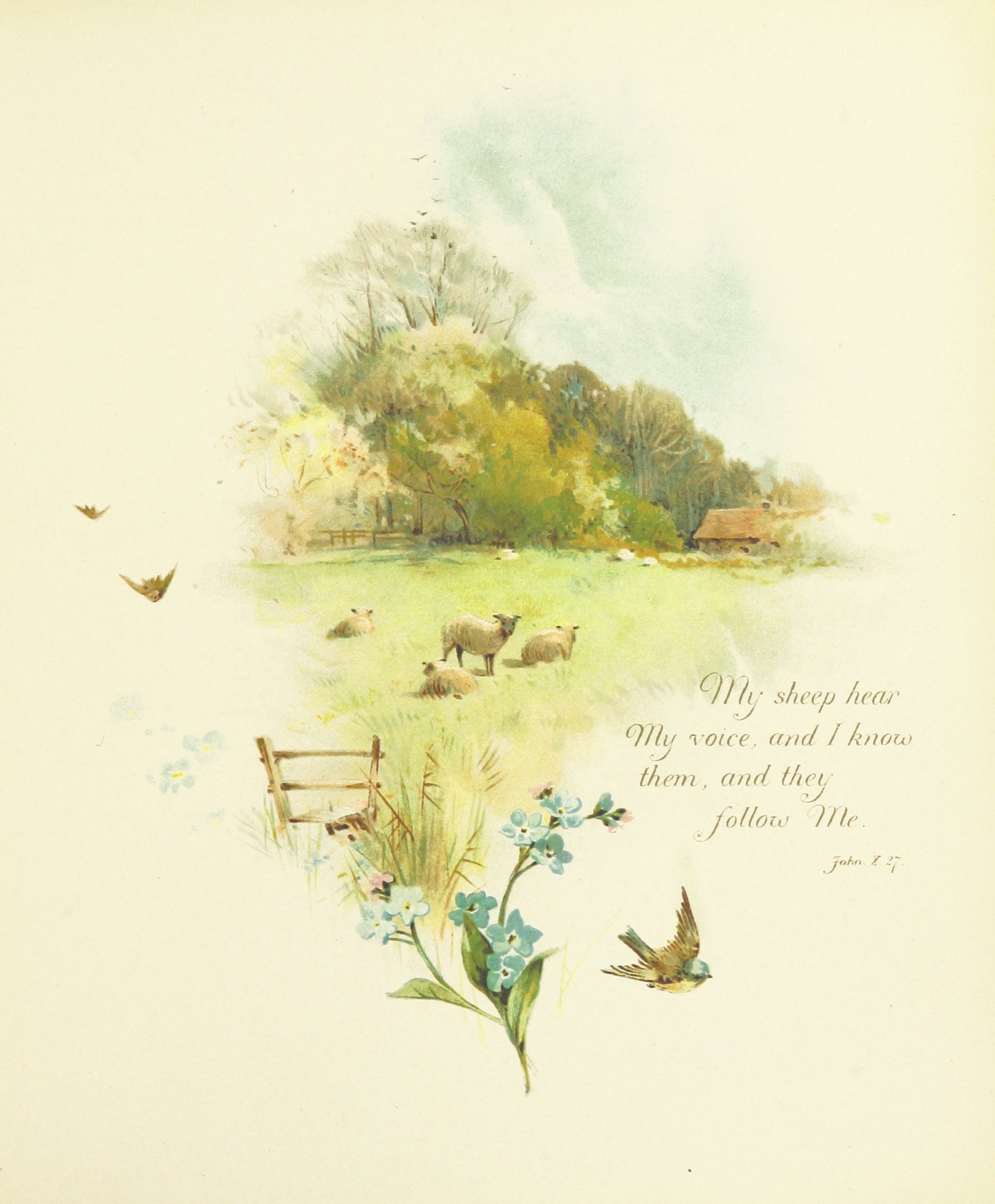 Dwie ilustracje z książeczki pt. „Dzwony Wielkanocne”. „Easter Bells [Sacred songs illustrated by F. H. Jackson, etc.]”, London, 1889 (British Library).
