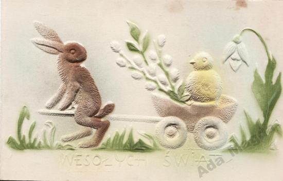 Wielkanocna kartka tłoczona, lata 60-te / źródło: imged.pl